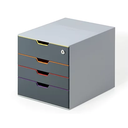 Durable Cassettiera 4 Cassetti Varicolor® 4 SAFE, Struttura Grigia, Cm 28 X 35,5 X 29,2 H