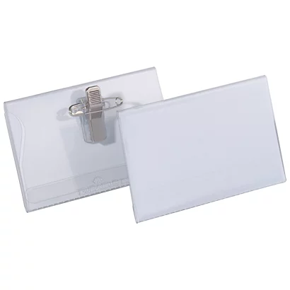 - Il porta badge DURABLE in PVC è la scelta ideale per distribuire badge e tessere per i visitatori, semplici ma dall’aspetto professionale, nel tuo luogo di lavoro. È sufficiente inserire il badge nel porta badge attraverso l’apertura laterale e assicurarlo con la clip a coccodrillo o la spilla in dotazione. La clip e la spilla offrono due possibilità per assicurare il porta badge. Ciascuna confezione contiene 50 porta badge trasparenti con inserti che possono essere personalizzati grazie a DURAPRINT®.