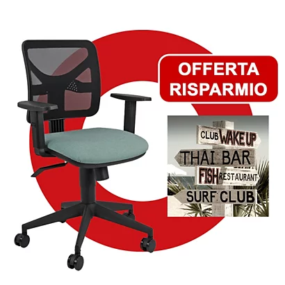 - Se ami mari e oceani, approfitta di questa Offerta Risparmio composta da una sedia operativa Marine nero/verde acqua realizzata in parte con plastica recuperata dagli oceani e da un quadro decorativo “Direzione Spiaggia”.