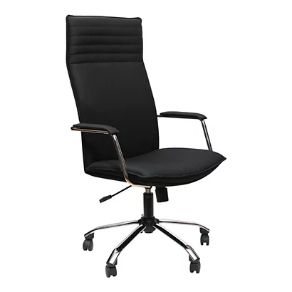 - Dotata di meccanismo oscillante con possibilità di blocco in posizione di lettura e intensità della spinta regolabile, la poltrona presidenziale Kosmo è confortevole ed adatta ad un uso prolungato. La struttura, solida e robusta, è realizzata in faggio multistrato, con imbottitura in poliuretano espanso. Sedile e schienale sono rivestiti in resistente tessuto polipropilene 100%. Braccioli in tubo cromato lucido con zona di appoggio in tessuto polipropilene 100% con elegante lavorazione crêpe. La base è dotata di 5 razze in tubo metallico cromato con ruote pivotanti. Il sedile è regolabile in altezza mediante alzata a gas.