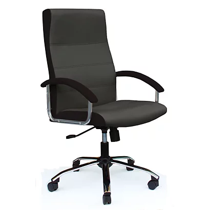 Poltrona Presidenziale Krissy, Parte Anteriore Similpelle Grigio Antracite, Fasce E Retro Tessuto Nero.