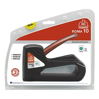 capacità di infissione con il minimo sforzo sulla maniglia. Caricamento: da sotto con carrello estraibile con tasto di chiusura carrello elastico che permetter di eliminare gli inceppi ed evitare l’usura della lametta e del carrello. Spingipunto: del tipo non estraibile con molla e pressore protetti. Disinceppo: la spinta elastica del carrello contro il frontale riduce gli inceppi. In caso di inceppo pesante, il