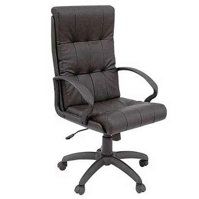 - Poltrona presidenziale con struttura in multistrato di legno, imbottitura in resina poliuretanica e rivestimento esterno in similpelle. É dotata di meccanismo oscillante con blocco in posizione di lettura per il massimo comfort durante il lavoro. Il sedile è regolabile in altezza mediante alzata a gas ricoperta da soffietto telescopico, con escursione di 9 cm. I braccioli, in polipropilene, offrono ulteriore comfort. La base (Ø 63 cm) a 5 razze in nylon ha ruote pivotanti in poliammide. Coordinabile con la poltrona attesa Sandra.