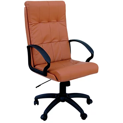 - Poltrona presidenziale con struttura in multistrato di legno, imbottitura in resina poliuretanica e rivestimento esterno in similpelle. É dotata di meccanismo oscillante con blocco in posizione di lettura per il massimo comfort durante il lavoro. Il sedile è regolabile in altezza mediante alzata a gas ricoperta da soffietto telescopico, con escursione di 9 cm. I braccioli, in polipropilene, offrono ulteriore comfort. La base (Ø 63 cm) a 5 razze in nylon ha ruote pivotanti in poliammide. Coordinabile con la poltrona attesa Sandra.