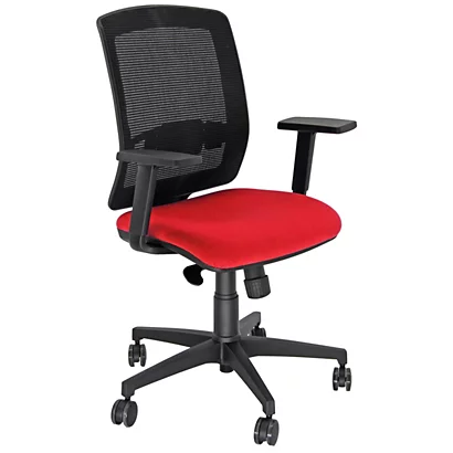 - Dotata di una serie di meccanismi per una corretta e comoda postura. Il meccanismo sincronizzato permette a sedile e schienale di oscillare simultaneamente, con possibilità di blocco in 4 posizioni; il dispositivo anti-shock invece, in caso di meccanismo sbloccato, bilancia la naturale spinta dello schienale in avanti; il meccanismo di contatto permanente invece permette allo schienale di oscillare liberamente, mantenendo il contatto con la schiena. Inoltre questa sedia operativa con braccioli consente la regolazione del peso, del supporto lombare, di altezza dei braccioli e del sedile. Struttura in acciaio e imbottitura in schiumato poliuretanico; il sedile è rivestito in tessuto ignifugo Classe 1, mentre lo schienale è in rete poliestere 100%. La base a 5 razze in nylon e fibra di vetro è dotata di ruote pivotanti a doppio battistrada. Comodi braccioli in polipropilene per un ottimo supporto a braccia e spalle.